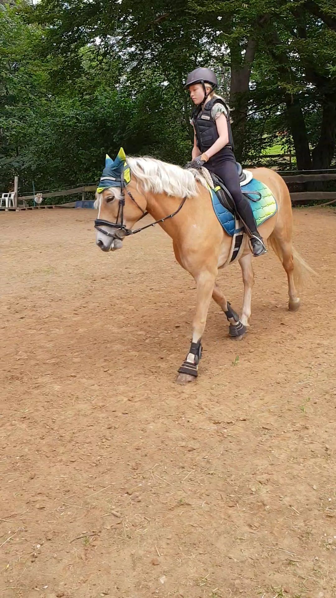 Des weiteren haben wir eine Reithalle und drei aussen Reitplätze .